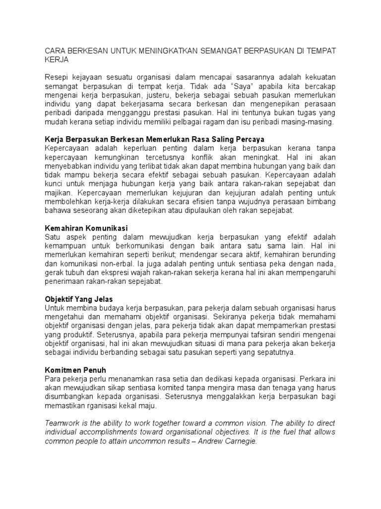 Cara Berkesan Untuk Meningkatkan Semangat Berpasukan Di Tempat Kerja Pdf